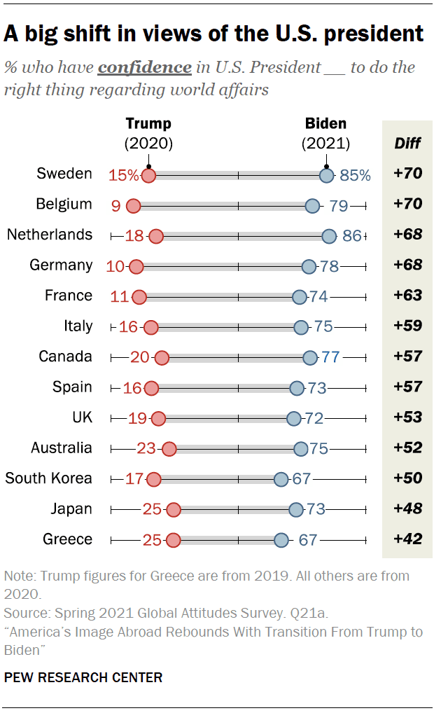 The world ❤️s Biden. Trump not so much, as this new Pew survey shows. (H/T David Skilling and his excellent substack).